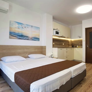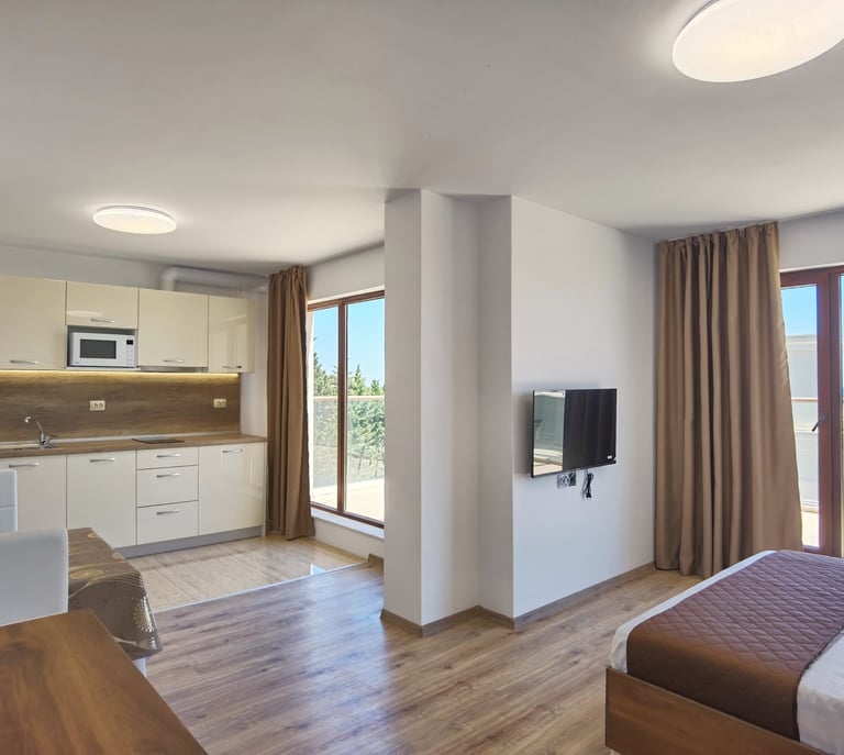 Разгледайте нашите модерни и уютни апартаменти, разположени само на няколко крачки от плаж Кабакум.